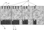 In some embodiments, single analyte test strips are designed to have the same location with at least four associated electrodes. Theelectrode60 that appears as an “h” is used for strip detection by the meter. The remaining assays will have at least three electrodes—one for sample fill detection and the other two as a counter electrode and a working electrode. These assays are not limited to a set number of electrodes, for it is foreseen in some embodiments that more electrodes may be added for purposes of determining and correcting for hematocrit or other interfering substances. In addition toelectrode60 providing for detection of the insertion of the strip into the meter, in alternative configurations,electrode60 may provide for an indication of the type of strip inserted. This may be configured by replacingelectrode60 with a micro memory, that not only provides for recognition of insertion, but additionally provides for a code or other information that identifies the strip inserted. Additionally, in some scenarios, the calibration curve(s) for the strip, or other information may be stored and accessed accordingly.