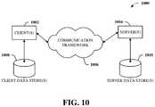 FIG. 10 is a schematic block diagram of asample computing environment1000 with which the disclosed subject matter can interact. Thesample computing environment1000 includes one or more client(s)1002. The client(s)1002 can be hardware and/or software (e.g., threads, processes, computing devices). Thesample computing environment1000 also includes one or more server(s)1004. The server(s)1004 can also be hardware and/or software (e.g., threads, processes, computing devices). Theservers1004 can house threads to perform transformations by employing one or more embodiments as described herein, for example. One possible communication between aclient1002 andservers1004 can be in the form of a data packet adapted to be transmitted between two or more computer processes. Thesample computing environment1000 includes acommunication framework1006 that can be employed to facilitate communications between the client(s)1002 and the server(s)1004. The client(s)1002 are operably connected to one or more client data store(s)1008 that can be employed to store information local to the client(s)1002. Similarly, the server(s)1004 are operably connected to one or more server data store(s)1010 that can be employed to store information local to theservers1004.