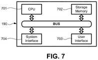 FIG. 7 is a schematic diagram of an exemplary computer control system for the OCT/NIRAF system100. As shown inFIG. 7, the computer control system is representative ofcomputer190 shown inFIG. 1. InFIG. 7, thecomputer190 includes a central processing unit (CPU)701, a storage memory (ROM/RAM)702, a user input/output (I/O)interface703, and asystem interface704. The various components of thecomputer190 communicate with each other via a data bus (BUS) in a known manner.