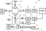 The output of the interferometer (interference patterns) is detected by the detector121 (first detector). Thefirst detector121 is implemented as an array of photodiodes, a photo multiplier tube (PMT), a multi-array of cameras or other similar interference pattern detecting device. The signals output from thefirst detector121 are pre-processed by data acquisition electronics (DAQ1)131, and transferred to acomputer190. Thecomputer190 performs signal processing to generate OCT images in a known manner. The interference patterns are generated only when the path length of the sample arm matches the path length of the reference arm within the coherence length of thelight source110.
