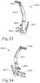FIG. 53 depicts a perspective view of the handle assembly ofFIG. 42, with a casing removed from the handle assembly, with the lower battery housing ofFIG. 46 moved distally to a fourth position relative to the handle assembly such that the drain activation rail ofFIG. 50 is moved to a third position such that the drain activation rail drives the battery drain sled ofFIG. 47 proximally to a second position;
