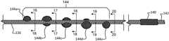 The direction of the spiral defined by the centers of mass of theabrasive elements144a,144b,144c,144d, and144ecan be in either direction around thedrive shaft136, and in either the same direction as the wind of the filars or in the opposing direction as the wind of the filars.
