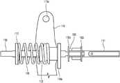 Movable handle1122 includes aclevis1178 that is pivotably coupled tohousing1112 about apivot1178a.Clevis1178 ofmovable handle1122 operably couples to adrive assembly1125 that, upon actuation ofmovable handle1122 relative tostationary handle1120, transitions thejaw members1130,1132 ofend effector assembly1114 between the open and closed positons. More particularly,clevis1178 includes front and rear drive surfaces1197a,1197bthat cooperate with thedrive assembly1125 to move thejaw members1130,1132.Front drive surface1197aoperably engages adistal spring washer1184athat secures tohousing1112 andrear drive surface1197b(or a portion thereof) operably couples to aspring collar1126 that slidingly mounts atop therear drive tube1160. A jaw force spring orcompression spring1189 is disposed atoprear tube1160 and biases thespring collar1126 against arear stop1115. As explained in more detail below, actuation of themovable handle1122 through its range of motion will ultimately bias thejaw force spring1189 which, in turn, provides a closure force to thejaw members1130,1132.