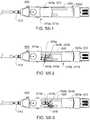 FIGS. 5W-1, 5W-2, 5W-3, and 5W-4 each respectively shows plan and elevation views of at least a portion of a catheter system, according to some embodiments.