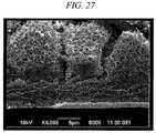 FIG. 27 depicts scanning electron microscopy of RPE cells growing on the apical surface of a substrate in accordance with several embodiments disclosed herein.