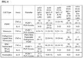 FIG. 4 shows potency of thedifferent mAb 0318 variants at blocking TREM-1 mediated production of inflammatory cytokines by different human cells. ThemAb 0318 antibody variants shown inFIG. 4 inhibit TREM-1 mediated release of inflammatory cytokines (e.g., TNF-α, IL-6, or IL-8) from different human cell types: PBMC, monocytes, neutrophils, and RBC-sedimented whole blood (i.e., majority of red blood cells removed using dextran-based RBC sedimentation protocol as described in the Examples). To produce the inflammatory cytokines, the cells were stimulated with either plate-bound PGRP1 and soluble peptidoglycan that lack TLR2 activity (“PGRP+PGN-Ecndss”) or phorbol 12-myristate 13-acetate (PMA) stimulated neutrophils expressing PGRP1 (“PMA-Stim Neutrophil Endogenous PGRP”). The variant antibodies shown include: (i) 0318-IgG4, (ii) 0318-IgG1.3f, (iii) 0318-IgG1.1f, (iv) 0318-IgG1-Aba, and (v) 318-IgG4-Aba. “N/D” indicates that the expression level of the particular inflammatory cytokine was not determined.