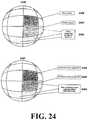 FIG. 24 is a depiction of an embodiment of an example of an unique information management facility, a Spherez, wherein coupons/offers/info/et. al. a user receives are received in thumbnail tiles that are mapped onto (in this case) a sphere; whereupon the sphere information management facility attracts like content to it, for which the user may be paid directly by the coupon sender, for prominent placement on the user's topic-specific sphere.