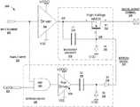 The pass-device in the example ofcircuit200 is high-voltageNMOS transistor M1212 with the drain oftransistor M1212 connected todigital output terminal206.NMOS transistor M1212 may provide improved efficiency when compared to other types of pass-devices because of low on-resistance (RDS-ON), for an N-channel MOSFET. Also, for the same on-resistance, an N-channel MOSFET may be lower cost compared with a P-channel MOSFET, e.g., an N-channel MOSFET may require a smaller die footprint on an IC compared to a P-channel MOSFET. However, turning an N-channel MOSFET completely ON requires a high enough VGSto minimize RDS-ON. and avoid losses, such as heat loss, that may reduce efficiency.