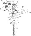 As shown inFIGS. 20 to 23, the inserted rod is clamped between three distinct contact areas P1, P2, P3, wherein two of the contact areas, P1, P2 are provided on thebase69 and one, P3, is provided by thelower surface72,803 of the selected closure element.