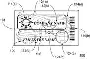DESCRIPTIONFIG. 1A illustrates anexample object100 that can be authenticated and distinguished from copies (e.g., unauthorized copies) of theobject100. Although theobject100 shown inFIG. 1A may appear to be an employee identification card, theobject100 may be any type of object that may require authentication, such as a valuable document, an important record, or a financial instrument (e.g., check, currency, or credit/debit card).