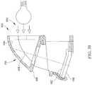 Referring toFIG. 38, which is a cross-sectional view of theprojector596, it can be seen that light604 enters anopening602 in theprojector body600. The light604 is collected at aparabolic reflection surface606 that redirects the light along adirection608 so that the light impinges upon thelens598 perpendicular to a surface610 of thelens598. The use of theparabolic reflection surface606 reduces light scatter that might tend to travel in a direction that is not perpendicular to the surface610 and create ghosting of the projected image.