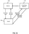FIG. 4 is a sequence diagram showing an example of a process for embedding an interface of one application into an interface of another application. The client, server, and third party platform ofFIG. 4 may be implemented by, respectively,client106,server102, andthird party platform104 ofFIG. 1A.