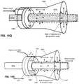 Themechanism2104 can also be coupled to a motor or other actuators (not shown) for moving theprobes2102 to a desirable position. In one embodiment, for example, thewaveguide system2100 can comprise a controller that directs the motor to rotate the probes2102 (assuming they are rotatable) to a different position (e.g., east and west) to generate electromagnetic waves that have a horizontally polarized HE11mode as shown in a block diagram2200 ofFIG. 22. To guide the electromagnetic waves onto the outer surface of theinsulated conductor2108, thewaveguide system2100 can further comprise a taperedhorn2110 shown inFIG. 21B. The taperedhorn2110 can be coaxially aligned with theinsulated conductor2108. To reduce the cross-sectional dimension of the taperedhorn2110, an additional insulation layer (not shown) can be placed on theinsulated conductor2108. The additional insulation layer can be similar to the taperedinsulation layer1879 shown inFIGS. 18Q and 18R. The additional insulation layer can have a tapered end that points away from the taperedhorn2110. The taperedinsulation layer1879 can reduce a size of an initial electromagnetic wave launched according to an HE11mode. As the electromagnetic waves propagate towards the tapered end of the insulation layer, the HE11mode expands until it reaches its full size as shown inFIG. 22. In other embodiments, thewaveguide system2100 may not need to use the taperedinsulation layer1879.