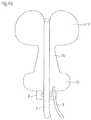 Because the length of the urethra varies among individuals, this embodiment is preferably equipped with a claimedelement11 and/or13 which, as is shown inFIG. 3a, permit a pre-urethral sizing and fixation of the balloon envelope.