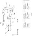 FIGS. 41B and 41C are schematic illustrations of the various degrees of freedom provided by the joints of theadapter828 androbotic arm830, andFIG. 41D is a table listing the type of degree of freedom (e.g., rotational, linear) associated therewith. As shown inFIGS. 41B and 41C, and as described above, theinterface mechanism840 is coupleable to thesupport822 of the table800 and thefirst link members832 are pivotally coupled to theinterface mechanism840 at joint833 about a pivot axis P1 labeled inFIGS. 41A-41C. Thepivotal joint833 of thefirst link members832 to theinterface mechanism840 allows thefirst link members832 to rotate about the z-axis and provide a first degree offreedom DOF1 at joint833, i.e., Z-axis rotation. In this embodiment, thefirst link members832 can also rotate within thegap852 oftracks850 around thetable support822 about a z-axis labeled P3 inFIGS. 41A-41C.