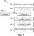 Once an audio profile for the user has been identified or obtained, the system may next instep340 determine a target frequency range for the audio output, based upon or otherwise with respect to the user profile. In other words, a target frequency range will be determined within any one of the one or more perceivable audio frequency ranges associated with the audio profile for the current user. The determined target frequency range may preferably comprise a bandwidth that corresponds to a bandwidth for the first audio data set. The determined target frequency range may be user-selectable via an interface that may be presented on the sound detection device for mobile applications or otherwise via a computing device linked to the host server. For example, the user may be enabled to select a specific range, or after an initial range has been automatically selected to specify that a different target frequency range is to be used. In certain contexts, it may be that an otherwise perceivable audio range corresponding to the initially selected target frequency range is undesirable, and therefore the user would prefer a lower or higher target frequency range.