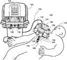 The computer-mediatedcontrol station120 may provide hand operatedmaster controllers130 that allow manipulation of the teleorobotic slavesurgical instruments102,104,106 by transmitting signals, such as electrical or optical control signals provided bycables132, to theactuators122,124,126, and128 that control the actions of the coupledsurgical instruments102,104, and106. Typically one of the surgical instruments,surgical instrument102 for example, will be a camera instrument that is manipulated to place the remaining surgical instruments and the objects being manipulated within a field of view of the camera. The camera instrument transmits signals to thecontrol station120 so that an image captured by the camera of the instruments and objects within the field of view can be displayed on avisual display134 that is viewed by the surgeon as the coupledsurgical instruments104,106 are manipulated. The hand-operatedcontrollers130 and thevisual display134 may be arranged to provide an intuitive control of thesurgical instruments104,106, in which the instruments move in a manner similar to the operator's hand movements with the controllers.