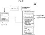 FIG. 9 is a functional block diagram illustrating amedical guidance system100 according to another embodiment of the present disclosure. In this embodiment, themedical guidance system100 transmits and receives data to/from animage server113 that receives image information from a medical imaging device114. Themedical guidance system100 includes acomputer15 and anorientation localizer1 that are communicatively-coupled via a bus. Theimage server113 includes, but is not limited to, a DICOM™ server or equivalent that receives and stores image information from the medical imaging device114. The medical imaging device114 includes, but is not limited to, a computed tomography (CT) scanner, magnetic resonance imaging (MRI) scanner, positron emission tomography (PET) scanner, single-photon emission computed tomography (SPECT) scanner and/or fluoroscopy scanner.