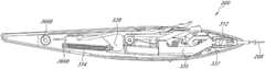 Theright housing304 additionally includes various engagement members. The engagement members can include protrusions from the inner wall of theright housing304 that engage portions of various internal components of the multiple-implant delivery apparatus200. For example,engagement member555 engages the distal end of thetrigger spring352,engagement member345 engages one end of thecam spring342, andengagement member325 engages thecollet holder321.