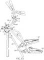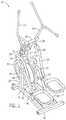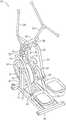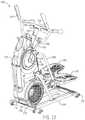 When thefoot pedals32 are driven by a user, the intermediate portions of thelower reciprocating members26 translate in a substantially linear path via therollers30 along theinclined members22. In alternative embodiments, theinclined members22 can include a non-linear portion, such as a curved or bowed portion (e.g., see the curvedinclined member123 inFIG. 17), such that intermediate portions of thelower reciprocating members26 translate in non-linear path via therollers30 along the non-linear portion of theinclined member22. The non-linear portion of theinclined members22 can have any curvature, such as a constant or non-constant radius of curvature, and can present convex, concave, and/or partially linear surfaces for therollers30 to travel along. In some embodiments, the non-linear portion of theinclined members22 can have an average angle of inclination of at least 45°, and/or can have a minimum angle of inclination of at least 45°, relative to a horizontal ground plane.