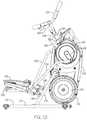 With reference toFIGS. 9A-9F, thehandles134 provide an input into thecrankshaft125 through the upper linkage. Thepedals132 provide an input into thecrankshaft wheel125 through alower linkage93. The crankshaft being fixedly connected to the crankwheel124 causes the two to rotate together relative to each other.