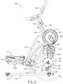 Each handle may have a linkage assembly, including thehandle134, the pivot axis D, thelink138, theupper reciprocating member140, and thedisk142. Two handle linkage assemblies may provide input into thecrank shaft125. Each handle linkage may be connected to the crankshaft125 relative to the pedal linkage assembly such that each of thehandles134 reciprocate in an opposite motion relative to thepedals132. For example, as theleft pedals132 is moving upward and forward, theleft handle134 pivot rearward, and vice versa.