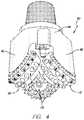 FIG. 4 is a perspective view of a rotary cone drill bit including example cutting elements as disclosed herein;