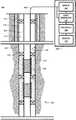 For the flow of a fluid behind a casing in the wellbore, the proximity of the fluid flow to theoptical fiber162 can result in the acoustic signal being detected. The flow behind the casing can generally be characterized by a flow of fluid through one or more restrictions based on a generally narrow or small leak path being present. The flow through such a restriction may be characterized by an increase in spectral power in a frequency range between about 0 Hz to about 300 Hz with a main energy contribution in the range of about 0 Hz to about 100 Hz, or between about 0 Hz and about 70 Hz.