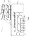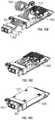 FIG. 9F is an exploded front isometric view of modular faceplateoptical sub-assembly900 which includes a plurality of multi-bayoptical housings902 each having a front multi-bayoptical connector receptacle904 and a rearoptical connector receptacle906. In this example, each front multi-bayoptical connector receptacle904 includes a plurality ofoptical connector bays908, which may be, for example, duplex connector bays for receiving duplex connectors.