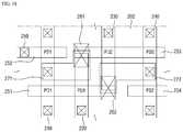 Further, afirst gate electrode251, asecond gate electrode252, athird gate electrode253 and afourth gate electrode254 are elongated in the other direction (e.g., transversal direction inFIG. 20), intersecting the firstactive fin210 to the fourthactive fin240. Specifically, thefirst gate electrode251 may completely intersect the firstactive fin210 and the secondactive fin220, while partially overlapping an end of the thirdactive fin230. Thethird gate electrode253 may completely intersect the fourthactive fin240 and the thirdactive fin230, while partially overlapping an end of the secondactive fin220. Thesecond gate electrode252 and thefourth gate electrode254 are formed so as to intersect the firstactive fin210 and the fourthactive fin240, respectively.