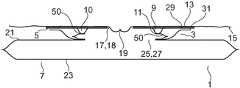 In embodiments, the third andfourth coupling parts27,31 of the load bearing structure are configured to allow less relative movement of the collectingbag7 and sealingwafer5, than the first andsecond coupling parts9,11. Accordingly, the load bearing structure will experience strain before the sealing structure. Thus, the sealing structure may be relieved from load bearing. In the embodiment ofFIG. 1, thefourth coupling part31 is attached to the collectingbag7 and includes an adhesive on a proximal side. The adhesive on thefourth coupling part31 attaches to the sealingwafer5. In this case, thethird coupling part29 forms part of the sealingwafer5. In embodiments, the third andfourth coupling parts29,31 are arranged radially outward of the first andsecond coupling parts9,11 in relation to the stoma-receivingopenings18,27.