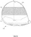 When stacked in lay-up4620, the overlappingregions4660 of the clusters are aligned in the direction of the thickness of lay-up4620 to increase the thickness ofcentral region4606 ofcomposite component4600, while the “spokes” (thestrips4626a-46256g) are “fanned” or angularly spaced from each other within each cluster and with respect to spokes in adjacent clusters. Prior to curing/molding, lay-up4620 has a cross-sectional profile that is similar tocomposite component4600 except that lay-up4620 is flat, that is, lay-up4620 does not have an overall convex shape. Thus, in profile, the rear surface of lay-up4620 has a central region of increased thickness and gradually tapers to a relatively thinner peripheral region of substantially uniform thickness surrounding the central region. In some embodiments, lay-up4620 has a thickness of about 5 mm at the center ofcentral region4606 and a thickness of about 3 mm atperipheral region4608. A greater or fewer number of panels and/or clusters of strips can be used to vary the thickness at the central region and/or peripheral region of lay-up4620.