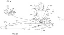 Standard sensor packages like those found in smartphones can also be arranged to move with each of the cameras. For example, a sensor pack can include an accelerometer, an inclinometer, a magnetometer, and the like. Such sensors can be used to identify the orientation and position of each camera, and to thereby better identify what the camera is showing. For example, if thepatient camera110 is set with no incline (and is showing human movement in its field of view), it might be inferred that the camera is pointing horizontally straight down the torso of the lyingpatient102.