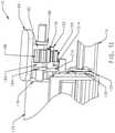 FIG. 11 is a front view of the biopsy device ofFIG. 7 taken in cross section along lines11-11 through a bayonet locking member disengaged from the stacking straw assembly by attaching the disposable probe assembly to the reusable hand piece;