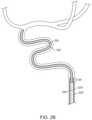 The flexibility of thesheath body222 can vary over its length, with increasing flexibility towards the distal portion of thesheath body222. The variability in flexibility may be achieved in various ways. For example, the outer jacket may change in durometer and/or material at various sections. A lower durometer outer jacket material can be used in a distal section of the sheath compared to other sections of the sheath. Alternately, the wall thickness of the jacket material may be reduced, and/or the density of the reinforcement layer may be varied to increase the flexibility. For example, the pitch of the coil or braid may be stretched out, or the cut pattern in the tubing may be varied to be more flexible. Alternately, the reinforcement structure or the materials may change over the length of thesheath body222. In an implementation, the distal-most section has a flexural stiffness (E*I) in the range 50 to 300 N-mm2 and the remaining portion of thesheath body222 has a flexural stiffness in therange 500 to 1500 N-mm2, where E is the elastic modulus and I is the area moment of inertia of the device. In another implementation, there is a transition section between the distal-most flexible section and the proximal section, with one or more sections of varying flexibilities between the distal-most section and the remainder of thesheath body222. In this implementation, the distal-most section is about 2 cm to about 5 cm, the transition section is about 2 cm to about 10 cm and the proximal section takes up the remainder of the sheath length.