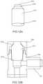 Referring toFIG. 13D, a partial cross-sectional view of the assembledrigid hub120, two-part valve218, andrigid hub cap124 taken along the plane defined by the diameter of therigid hub120 and the longitudinal axis of theside port121 is illustrated. Theproximal region228 having the reduced diameter is compressed within therigid hub cap124 to force the valve material radially inward in response to pressure applied to the flatdistal face226. The flatdistal face226 is flush with the distal end of therigid hub cap124 to allow for complete evacuation of the inner volume of therigid hub120 when flushing thecatheter insertion device100.