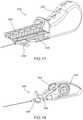 Therelease140 also includes aproximal arm174 having an enlarged proximal end141 (not shown). Theproximal arm174 slides within thetop opening156 of thehandle110. The enlarged proximal end of therelease140 is dimensioned to be larger than thetop opening156 so that distal movement of therelease140 is limited to the length of theproximal arm174 and so that therelease140 does not separate from thehandle110. Therelease140 can also include agrip176 that allow a finger, such as the index finger in an overhand operation or the thumb in an underhand operation, of the practitioner to predictably actuate therelease140 in either a distal or proximal direction.