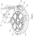 FIG. 14 shows an enlarged view of thelift assembly508 in which a cover of theupper spool512 has been removed to show the interior of theupper spool512. Each of the spools includes amandrel524. Themandrel524 may be fixed with regard to the structure of the spool, remaining stationary during operation. In some implementations, themandrel524 may be formed into or from a portion of the structure of the spool.