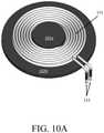 FIG. 10A is an image of an embodiment illustrating a magnetic material and a power-transmitting coil. The coil shows a right angle bend to the connection ends.