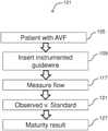 The observed flow is blood is compared121 to a standard (e.g., for a binary yes/no call, or to stratify). This can be done using a computer that receives data from the guidewire. The computer can further provide 127 a result supporting a determination of whether the fistula is mature. Any suitable instrumented guidewire can be used to measure117 the blood flow. For example, a functional management guidewire can be used.