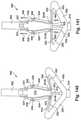 Referring now toFIGS. 177-178, an exemplary implantableprosthetic device3100 is shown. Thedevice3100 includes an implantableprosthetic device3110 and acoupler3120. An actuation shaft or means of actuating orwire3130 can extend through thecoupler3120 to thedevice3110 to open and close thedevice3110. Thedevice3110 is similar to exemplary implantable prosthetic devices described in the present application and includes aproximal collar3112 having anopening3114 and radially disposedapertures3116. Thecoupler3120 has moveable arms orfingers3122 that can be moved between open and closed positions. Themoveable arms3122 includeprotrusions3124 configured to engage theapertures3116 of theproximal collar3112 of thedevice3110. Themoveable arms3122 are biased inward so that moving the actuation shaft or means of actuating3130 in a distal direction Y through thecoupler3120 and between themoveable arms3122 spreads themoveable arms3122 outwards so that theprotrusions3124 engage theapertures3116. In the illustrated embodiment, theprotrusions3124 andapertures3116 are tapered to ease engagement of theprotrusions3124 with theapertures3116. Moving the actuation shaft or means of actuating3130 in a retraction direction X allows themoveable arms3122 to move inward so that theprotrusions3124 disengage theapertures3116. In this way thedevice3110 can be released and recaptured by thecoupler3120.