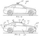 Note that a sensor such as thesensor210 and other sensors discussed herein can be implemented in the context of different embodiments. For example, a device or system and vehicle such as disclosed in non-limiting U.S. Pat. No. 9,874,635, entitled “Lidar system,” which issued on Jan. 23, 2018 and which is incorporated herein by reference in its entirety, can be utilized to implement an embodiment of thesensor210 and thevehicle212 shown inFIG. 14. Although thesensor210 shown inFIG. 14 is shown in a particular root mounted arrangement with respect tovehicle212, it should be appreciated, however, that thesensor210 and other sensors or sensing devices discussed herein can be implemented in more low-profile embodiments. For example, a non-limiting example of a sensing system that can be implemented in accordance with an embodiment is disclosed in U.S. Patent Application Publication No. 2018/0011173, entitled “Low-Profile Imaging System with Enhanced Viewing Angles,” which published on Jan. 11, 2018 and is incorporated herein by reference in its entirety. Another example of a low-profile system that can be utilized to implement thesensor210 ofFIG. 14 is the Toyota Research Institute Platform 3.0 autonomous vehicle prototype and related systems and devices discussed and depicted in the non-limiting Cars.com article entitled “Toyota's Next-Gen Self-Driving Car Looks Less Like a Science Project” by Fred Meier dated Jan. 5, 2018 (hereinafter referred to as the “Toyota article”) which is incorporated herein by reference. Thesensor210 can be implemented in the context of low-profile imaging and sensing systems such as disclosed in U.S. Patent Application Publication No. 2018/0011173 and the above-referenced Toyota article.