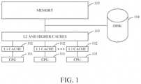 Such computer systems will also typically include one or more secondary storage devices in addition to main memory and cache memory. These secondary storage devices can include one or more of hard drives, optical drives, flash drives or the like, which are collectively represented here bydisk104. The disk orsecondary storage104 may store several orders of magnitude more data than thememory105, but is not directly accessible using a physical address. If aCPU101 wants to access data stored on thedisk104, a virtual memory system (not shown inFIG. 1) moves a chunk of data, typically referred to as a page, from thedisk104 to thememory105 and creates a translation from virtual addresses corresponding to that page to physical addresses. A special kind of translation cache (not shown inFIG. 1), typically called a “translation look-aside buffer” or TLB for short, caches the translation mappings from virtual pages to physical pages. The virtual memory system can be viewed as a caching system, which stores a portion of the data located in thedisk104 in thememory105.