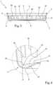 As shown inFIG. 5, eachrib19 has abody22, which may be of an approximately semi-cylindrical shape and which, in the example shown, extends parallel to the axis Z. Eachrib19 has an end facing the rollededge5, i.e. opposite thetransverse panel4. The ends of theribs19 facing the rollededge5 may have different conformations, in particular two different conformations.