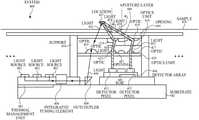 As illustrated in the figure,system200 can include a plurality of optics and a plurality of detector pixels, where each optic can be associated to one or a plurality of detector pixels. Each optics-detector pixel pair can be associated with an optical path insample220. In some examples, the association can be one optics-detector pixel pair to one optical path insample220. For example, optic223 anddetector pixel233 can be associated with the optical path from light254, andoptic227 anddetector pixel237 can be associated with the optical path fromlight255. Sincecontroller240 can associatedetector pixel233 anddetector pixel237 with different locations (e.g.,location257 and location259) and/or different light paths insample220,controller240 can discern differences in path lengths, depths of penetration, angles of incidence, exit locations, and/or exit angles.