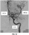 According to some embodiments, theimaging device20 is configured to acquire real-time images of the subject prior to and/or during the execution of a procedure (e.g., mechanical thrombectomy). In some embodiments, theimaging device20 is configured to acquire real-time images of the subject while navigating to the site of the intervention. In some embodiments, theimaging device20 comprises an external X-ray device. However, in other arrangements, theimaging device20 can include any other type of device, such as, e.g., intravascular ultrasound and/or any other intravascular imaging device. One embodiment of an output or other computer representation derived at least partially from the output of theimaging device20 showing a catheter being advanced through the vasculature of the subject is illustrated inFIG. 2.