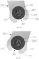 Thedeformable member530 may include afirst end532 and asecond end534, as shown inFIGS. 50-54 and 56-59. Thesecond end534 may be positioned to engage thescrew portion516, as shown inFIGS. 50-54, 66, and 67. Thedeformable member530 may also include ahelical opening536 extending along the length of thedeformable member530. Thehelical opening536 may extend from an exterior surface of thedeformable member530 into a throughhole538. The throughhole538 may extend through thedeformable member530 from thefirst end532 to thesecond end534, as shown inFIGS. 54 and 57. Thehelical opening536 may form, for example, a spring allowing for deformation of thedeformable member530 when force is applied. The retainingmember540 may include an opening orpassage542 extending through the retainingmember540, as shown inFIGS. 50, 55, 58, 59, 64 and 65. The opening orpassage542 allows the retainingmember540 to engage thecoupling member580.