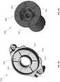 Theend cap assembly804 may include astationary end cap3802 and arotating end cap3804 as generally illustrated inFIG. 38. Thestationary end cap3802 may be fixedly secured to the housing110 (not shown) such that thestationary end cap3802 does not move relative to thehousing110. Therotating end cap3804 may be coupled to theagitator802 such that rotation of theagitator802 also results in rotation of the rotating end cap3804 (e.g., but not limited to, therotating end cap3804 and theagitator802 rotating in unison). According to one example, therotating end cap3804 may be coupled to theshaft906 and/or to theagitator body803. Alternatively, therotating end cap3804 may be unitary with theshaft906 and/or to theagitator body803.