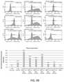 Example XI: Barcoding Antibody Labelling Agents and Cell Surface Feature AnalysisIn a first set of experiments, a barcoded oligonucleotide comprising an azide functional group and a FAM dye was conjugated to a Protein G labelling agent using a click chemistry reaction scheme. The barcoded oligonucleotide included a barcode sequence that may be used to identify Protein G and also a sequence that may be used as a priming site. Protein G was mixed with increasingly higher molar equivalents of DBCO-NHS (0×, 1×, 2×, 4× and 6×) in a series of mixtures. The DBCO-NHS was used to activate amine groups to become reactive to azide. Also included were varying equivalents of azide oligonucleotide to DBCO (0×, 1×, 1.5× and 2×) in the mixtures. Reactions were then allowed to proceed for 4 hours and the reaction mixtures evaluated with gel electrophoresis on a 4-12% bis-Tris gel. The results of the analysis are graphically depicted inFIGS. 47A-B. Protein G having up to 6 oligonucleotides linked were observed.
