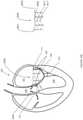 - FIG. 30H shows the three rows ofarcs300530063007 and an onion row ofeyes3008 starting to emerge from thedistal part3002 of the delivery capsule. It is noted that the onion row ofeyes3008 in the example embodiment ofFIGS. 30A-30I does not include some of theonion eyes3009, optionally two opposing onion eyes. A top view ofFIG. 30H would show the prosthetic mitral valve still somewhat compressed from a circular or D shape into a figure-8, due to the two opposingonion eyes3009 being still held within thedistal part3002 of the delivery capsule. At this point the prosthetic mitral valve is still connected to its delivery system, and not fully released. Such connection potentially enables controlling the prosthetic mitral valve, before releasing the prosthetic mitral valve completely.